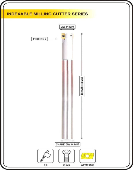 Indexable Insert Endmill 14MM II 2 Pocket II 10 Pcs APMT1135 Carbide Inserts Free