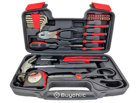 Buyohlic's 39 Piece General Household Hand Tool Kit Starter Set with Plastic Toolbox Storage Case