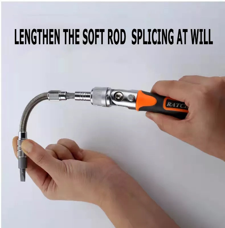 - Ratchet Screwdriver: Two-way ratchet with ergonomic PP+TPR handle and CRV shaft. Features an aluminum alloy ratchet for smooth, efficient operation and easy bit changes.